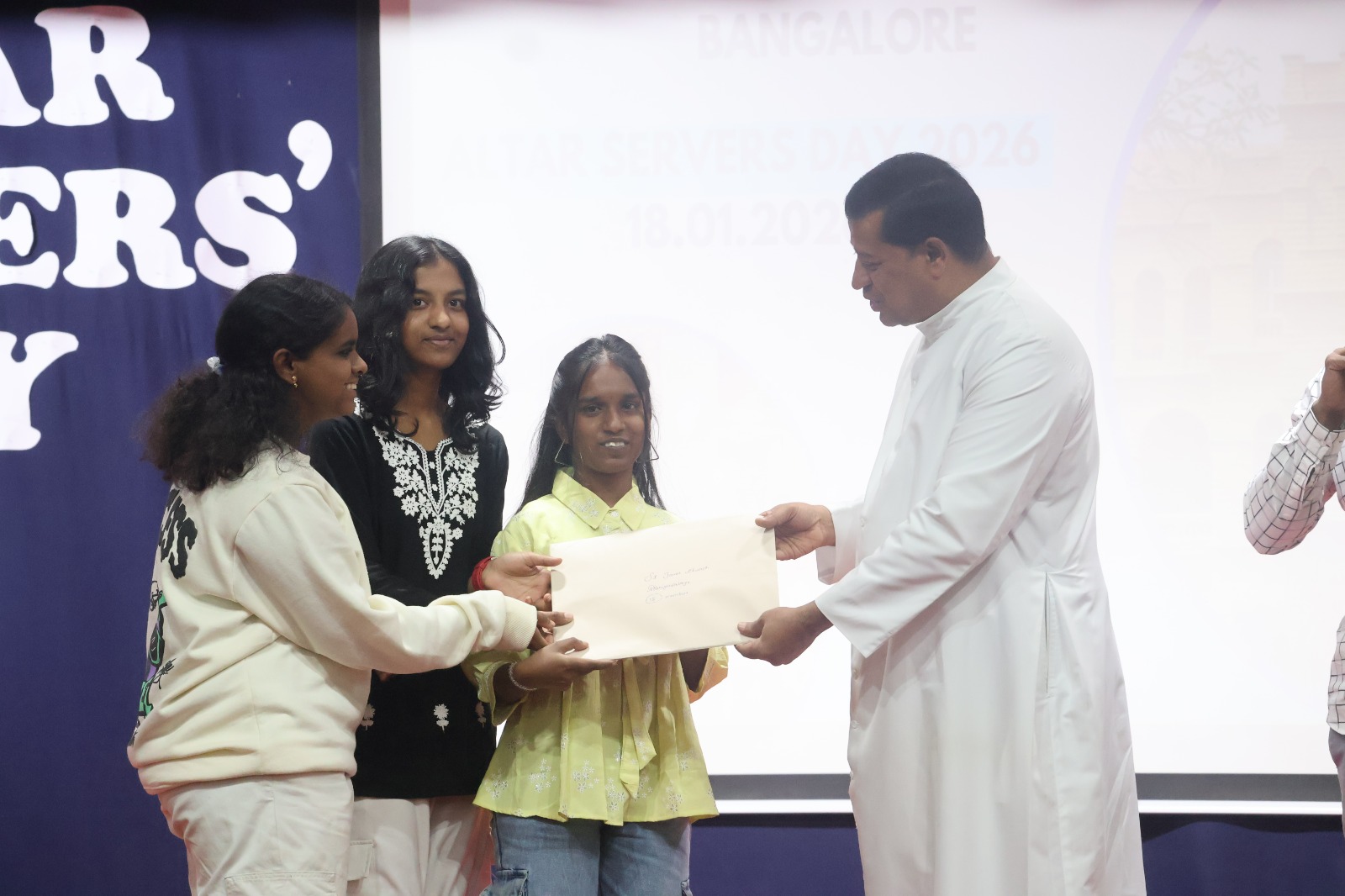 The day-long programme, organised by the Archdiocese of Bangalore, brought together around 450 altar servers—boys and girls—from 32 parishes. The event was inaugurated by Fr. Richard Britto, Rector of St. Peter’s Pontifical Seminary, who welcomed the participants and encouraged them to remain faithful and joyful in their ministry.
