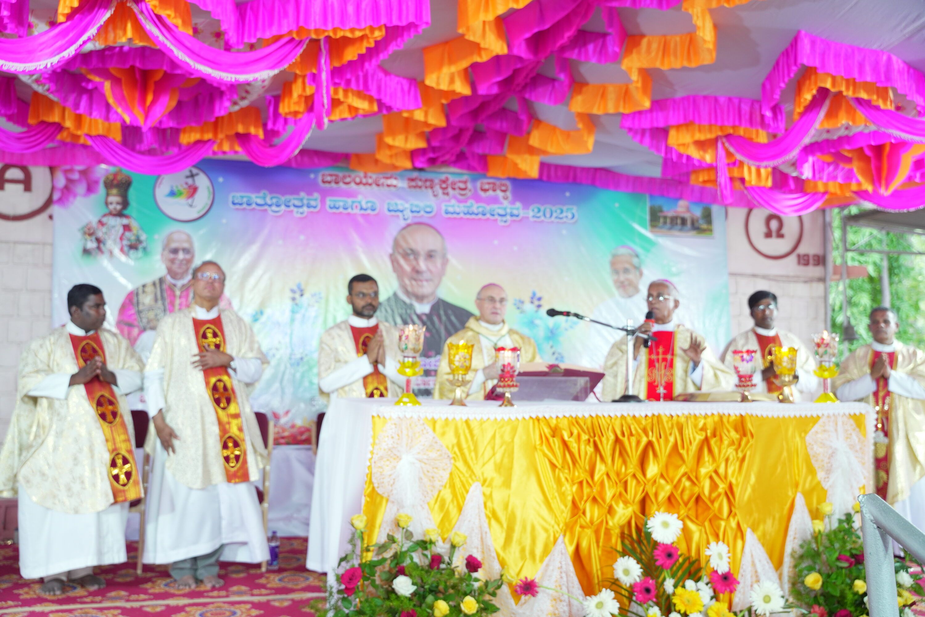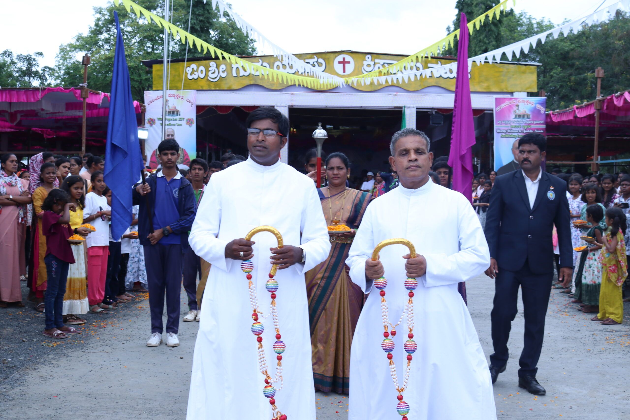 Following the Eucharist, a short felicitation programme was held in honour of the Nuncio. During the ceremony, Bishop Miranda and representatives of the faithful warmly felicitated him. His Excellency also hoisted the Bhalki Jathra flag and formally inaugurated the annual Shrine Feast, marking the beginning of the much-awaited Jathrostava celebrations.