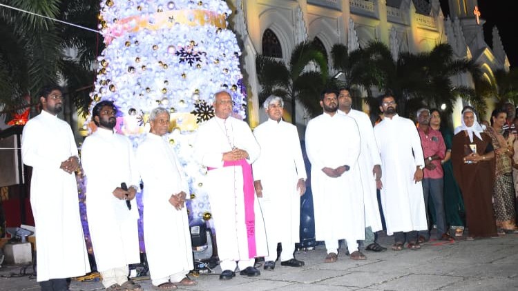 A brief prayer service preceded the illumination of the Christmas tree, which was formally blessed by the Archbishop. The inauguration was attended by Vincent Chinnadurai, rector and parish priest of the National Shrine of St Thomas Cathedral Basilica, along with clergy and members of the Archdiocese of Madras–Mylapore.