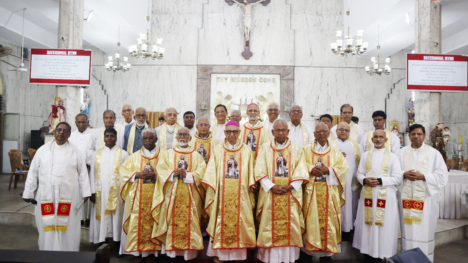 The celebration recognised the Sacerdotal Golden Jubilees of eight surviving priests, including two bishops, in what became a grand reunion of distinguished clergy who have served the Church across India throughout their long and devoted ministries. Five Jubilarians were present: Bishop Cyprian Monis, Bishop John Thomas, Fr. M. Alphonse Raj, Fr. Gerald Machado and Fr. Soosai Manickam. The other Jubilarians — Msgr Leslie Shenoy, Fr. Babazino Fernandes and Fr. Albert Lobo — were unable to attend.