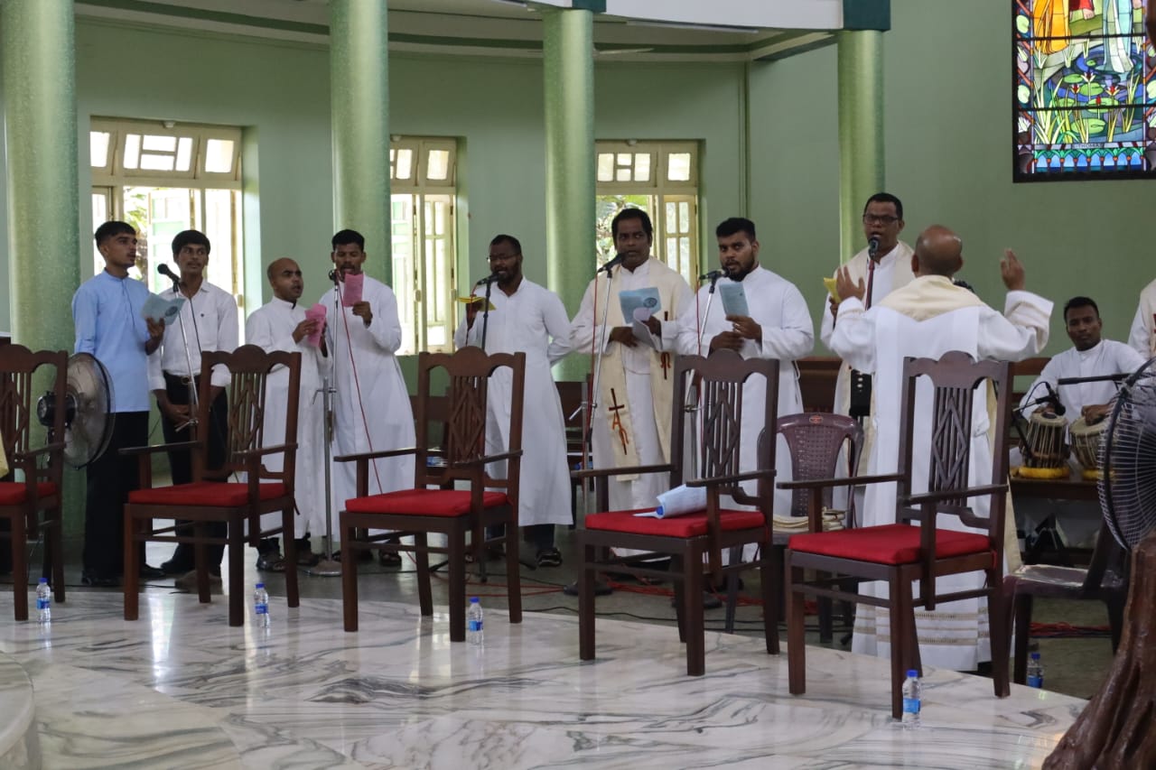 The Eucharistic celebration was concelebrated by Fr. Norman Almeida SFX, Rector of the Seminary, Fr. Steevan D’Souza SFX, Fr. Joaquim Rebelo SFX, Provincial Superior of the Goa Province of the Society of Pilar, and several other priests.