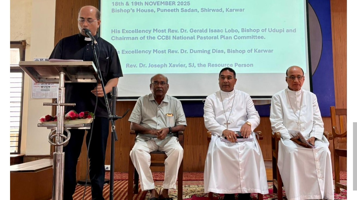 Karwar, Karnataka, November 22, 2025: A focused effort to strengthen pastoral vision held at Puneeth Sadan, Shirwad, Karwar, where a two-day seminar on “Evolving a Diocesan Pastoral Plan” gathered Church leaders and collaborators for intensive reflection and planning. The seminar, held on 18 and 19 November 2025, brought together Bishop Gerald Isaac Lobo of Udupi, Chairman of the CCBI National Pastoral Plan Committee, and Fr. Joseph Xavier, the chief resource person. Joining them were Bishop Duming Dias of Karwar, Consultors, Deans, Senate members, Commission Directors, and lay collaborators.