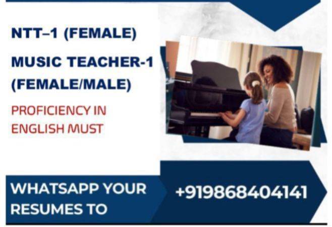 The role is designated for one NTT (Nursery Teacher Training) qualified female candidate to undertake music teaching responsibilities. Candidates must exhibit a high level of English proficiency.