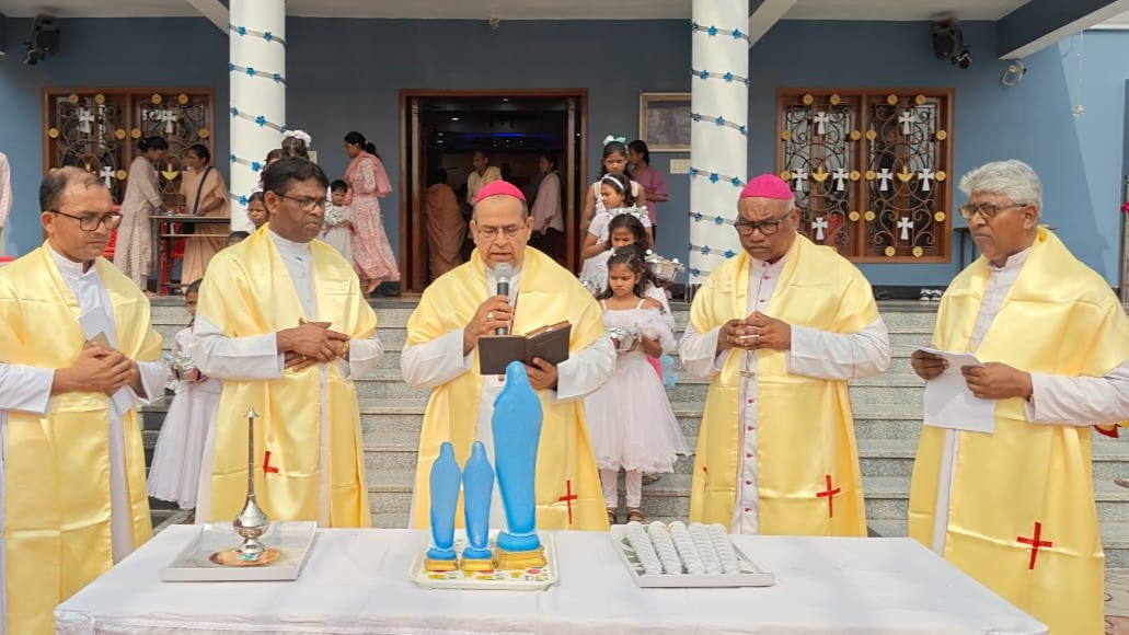 Led by Bishop Louis Mascarenhas of Allahabad, along with Fr. Reginald D’Souza, Vicar General, and Fr. Titus Lobo, Parish Priest, the festivity included a solemn Marian procession through the town of Dudhi. The adorned statue of Our Lady of Graces was carried reverently through the main streets, accompanied by clergy, religious, seminarians and lay faithful, as hymns and prayers filled the city.